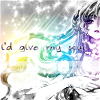 the heavens are sparkling with starlight tonight...that's what i see through your eyes Alright...someone kick me in the ass if it goes over 7 months without an update. -_- And yes, some of these are Christmas...omg. And because this post was SO massive...I had to split it up...FOR THE LOVE OF RA, MAN! XDNOT DIAL-UP FRIENDLY!Air Gear → 2Angel Sanctuary → 3Aladdin → 5Avatar: The Last Airbender → 2Bleach → 11Chrono Crusade → 3Code Geass → 67Clover → 1D.N.Angel → 2Death Note → 5Fruits Basket → 4Final Fantasy (VII and VIII) → 5Full Metla Alchemist → 3Full Moon Wo Sagashite → 1Fushigi Yuugi → 6Gurren Lagann → 34Haibane Renmei → 1Host Club → 6Higurashi → 1Inuyasha → 2Kingdom Hearts →55Kobato → 1Love Celeb → 1Loveless → 4Lyrical; (Text Only) → 3---228