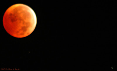 I kept thinking that I should've had one camera set up to take multiple exposures, showing the moon moving across the sky and changing colours in one frame (either that one or the one with the long lens would've had be a film camera, since I've only got the one DSLR and I don't think my point-and-shoot will do double exposures), but in the end I decided to Google somebody else's version of that later -- I'm assuming somebody, somewhere, will have done that. Eventually I'll do one of those myself just to have one that's all mine, but not this time.