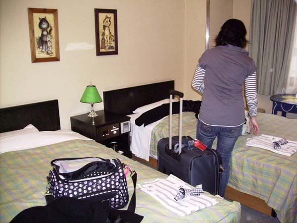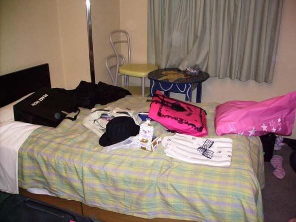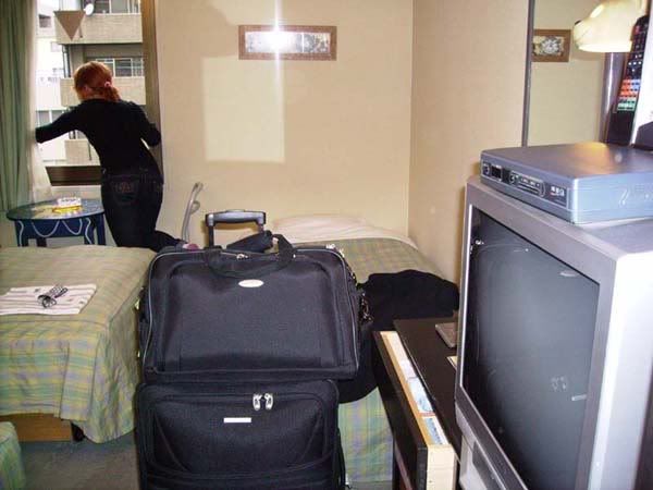 Hotel room in Osaka… and Nat getting my way.