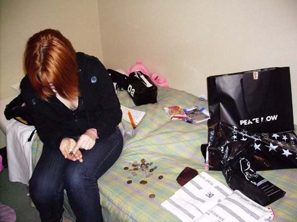 And Sally too, counting up her loose change for our convenience store run.For some reason (I still don’t even know why) we decided to go to every single convenience store we could find in the area, which was probably about five or six different ones. We eventually found the junk we’d been looking for and wandered back to the hotel for sleep.
