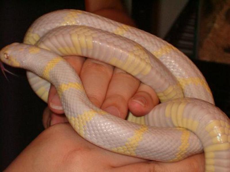 Familiar: Delta, an albino lavender California king snake.