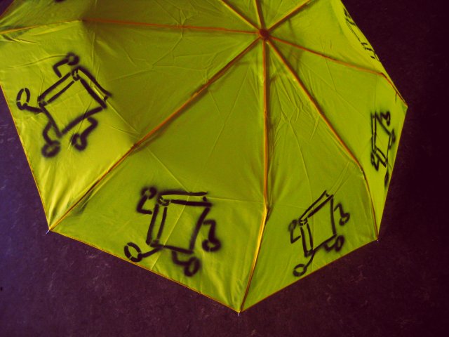 | I'll be off to Rubberchicken's place in an hour. Tomorrow morning we fly to London for the International BookCrossing Convention. I've heard the weather won't be all that good, so I've taken my precautions. Fellow conventioneers, 'tis by my Brellycumber thou shalt know me.  We'll do our best to keep you all posted! | |