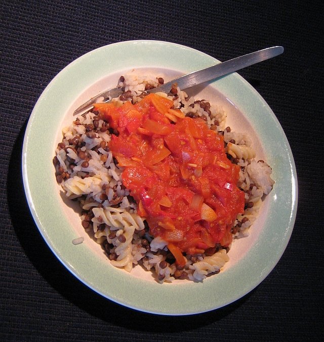 You can find me there under the username m03m. That's m-zero-three-m. Since I'm (for now) primarily an LJ user, these entries have been copied from there. Some have even been copied from MySpace first! That causes some problems with linkage. And if there's something about site changes and other ongoing events that makes you go 'huh?' because it doesn't seem to make any sense, it's probably about LiveJournal, not Scribbld. I apologize for any confusion and other kinds of inconvenience. Oh, and copying the entries from elsewhere means losing all comments, as well. 11th-Jun-2008 09:45 pm - Koshari (a vegetarian dish from Egypt)