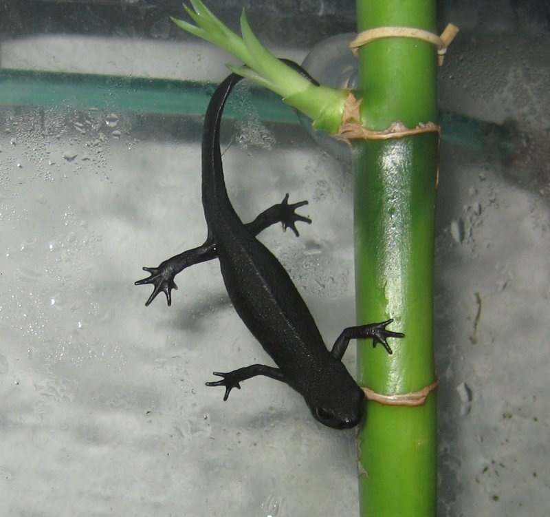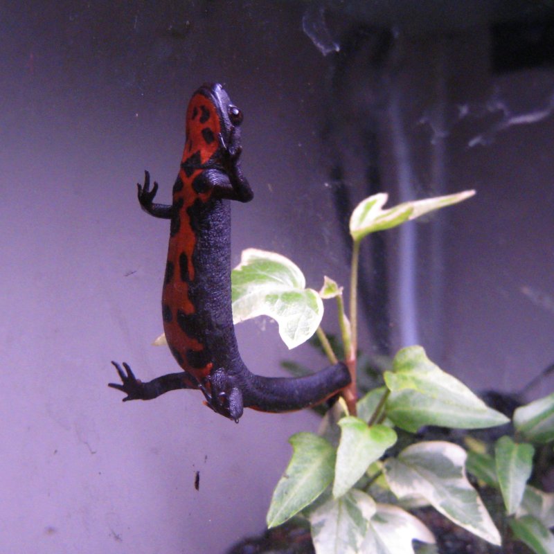 | I'm a gecko!" I've never seen newts climb up against the glass like this before. It sure looks funny and it makes me glad the tank is well sealed. | |